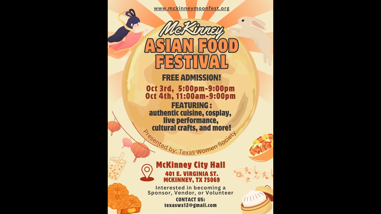 Join us for an unforgettable celebration of flavor, culture, and community at the inaugural McKinney Asian Food Festival — a two-day event packed with vibrant energy, mouthwatering cuisine, and fun for the whole family! Expect a feast for the senses, from sizzling street food to exquisite fine dining experiences. But it’s not just about the food — this festival is all about family, fun, and connection! Enjoy live performances, interactive cultural experiences, and kid-friendly activities throughout the weekend. There’s something for every age to explore and enjoy.Come hungry, bring the family, and get ready to celebrate the rich tapestry of Asian culture right here in McKinney. Let’s make delicious memories together!